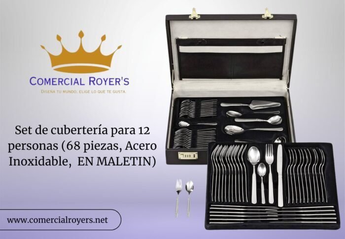 Set de cubiertos de 68 piezas en acero inoxidable en caja.